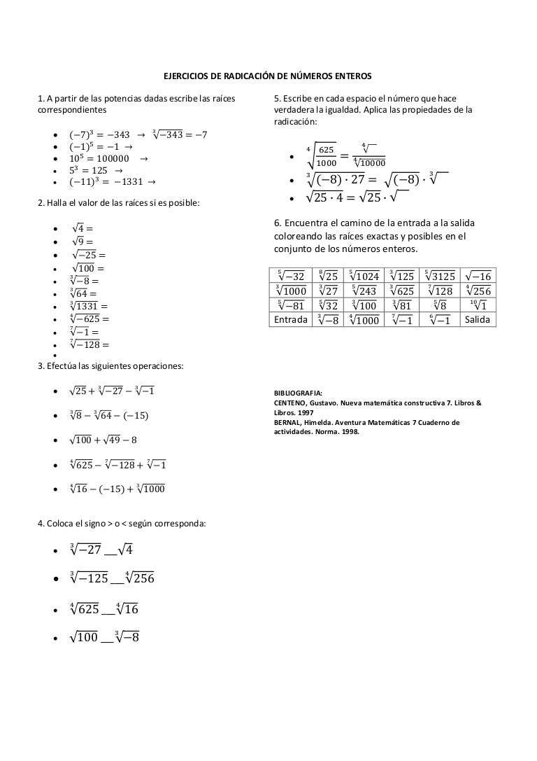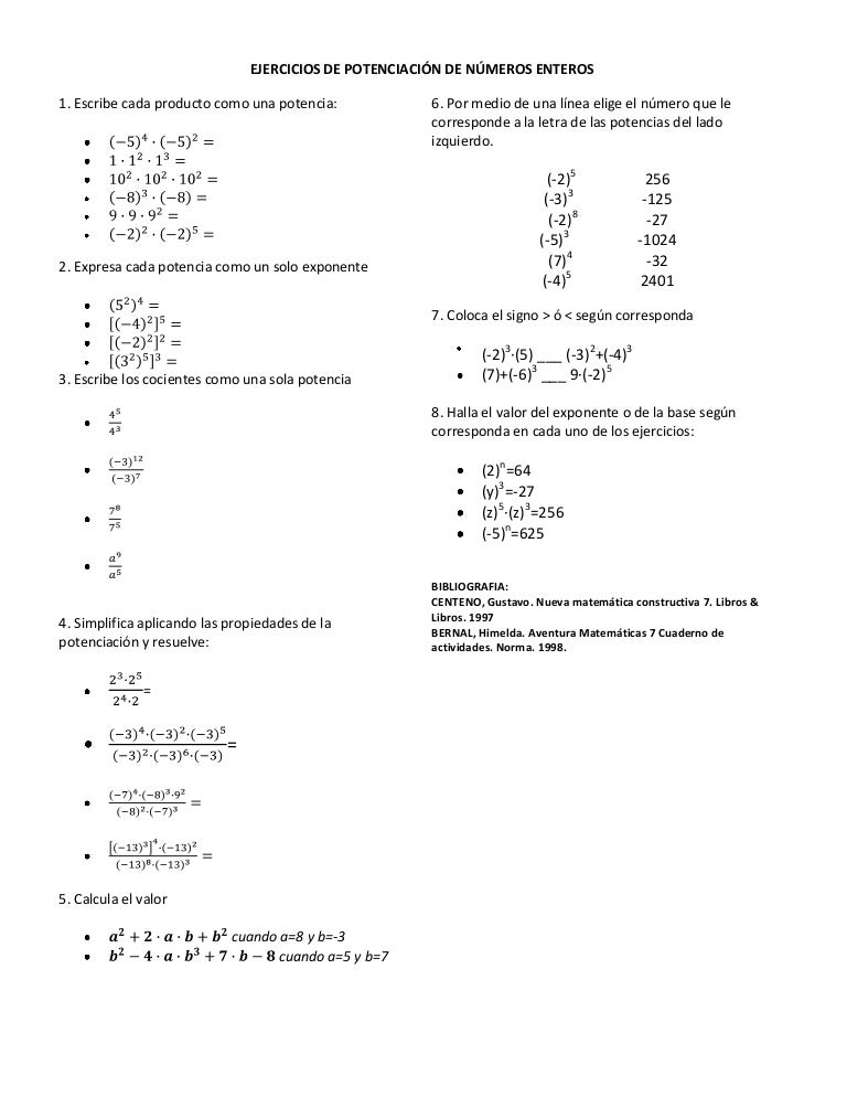 Ejercicios De Potencia De Numeros Enteros Matematica Serie 23
