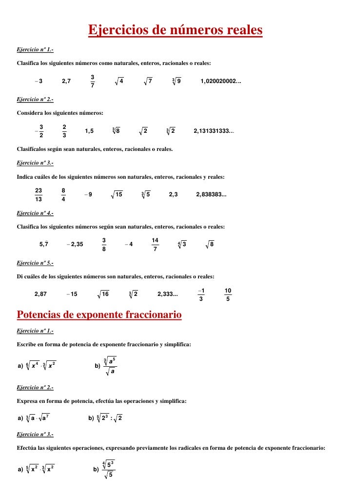 Tema 3 Ejercicios De Numeros Reales Potencias Radicales