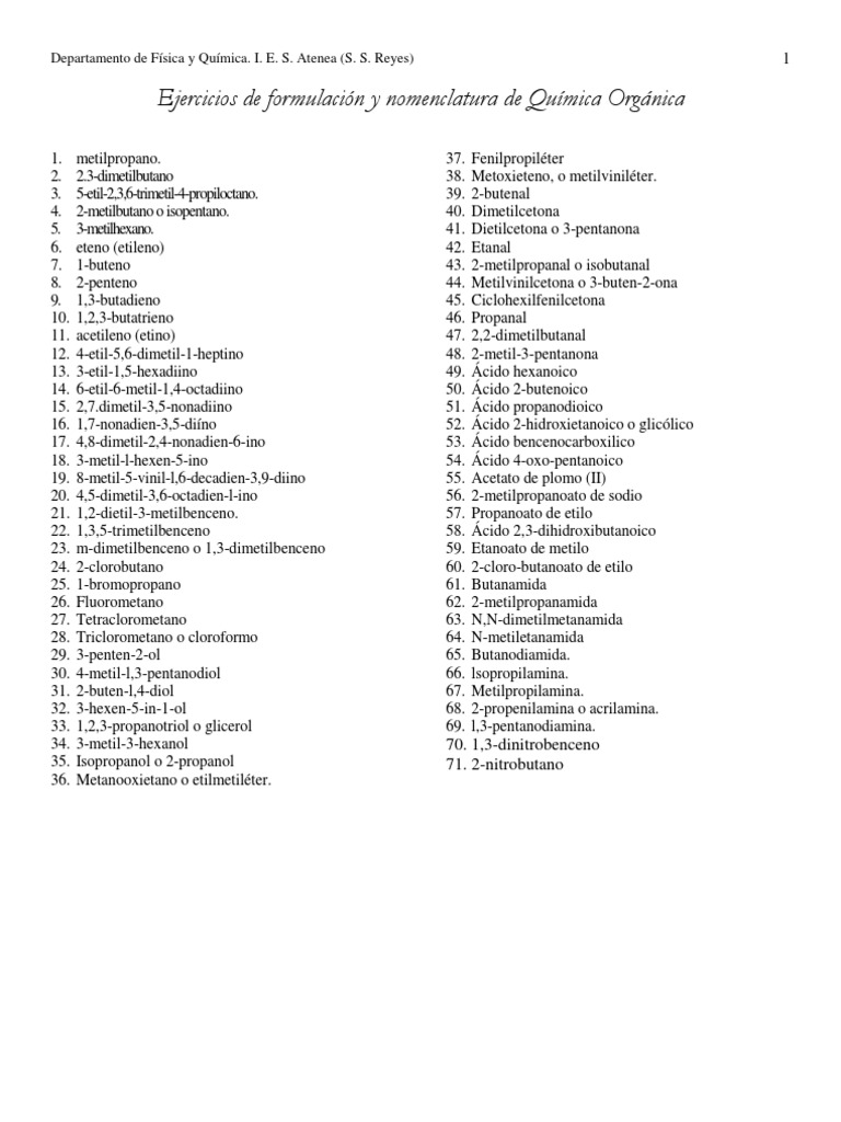 Ejercicios De Formulacion Organica Con Soluciones Pdf Pdf