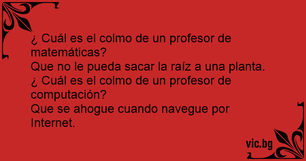 Cual Es El Colmo De Un Profesor De Matematicas Que No Le Pueda Sacar La Raiz A Una Planta Cual Es El Colmo De Un Profesor De Computacion Que Se Ahogue Cuando